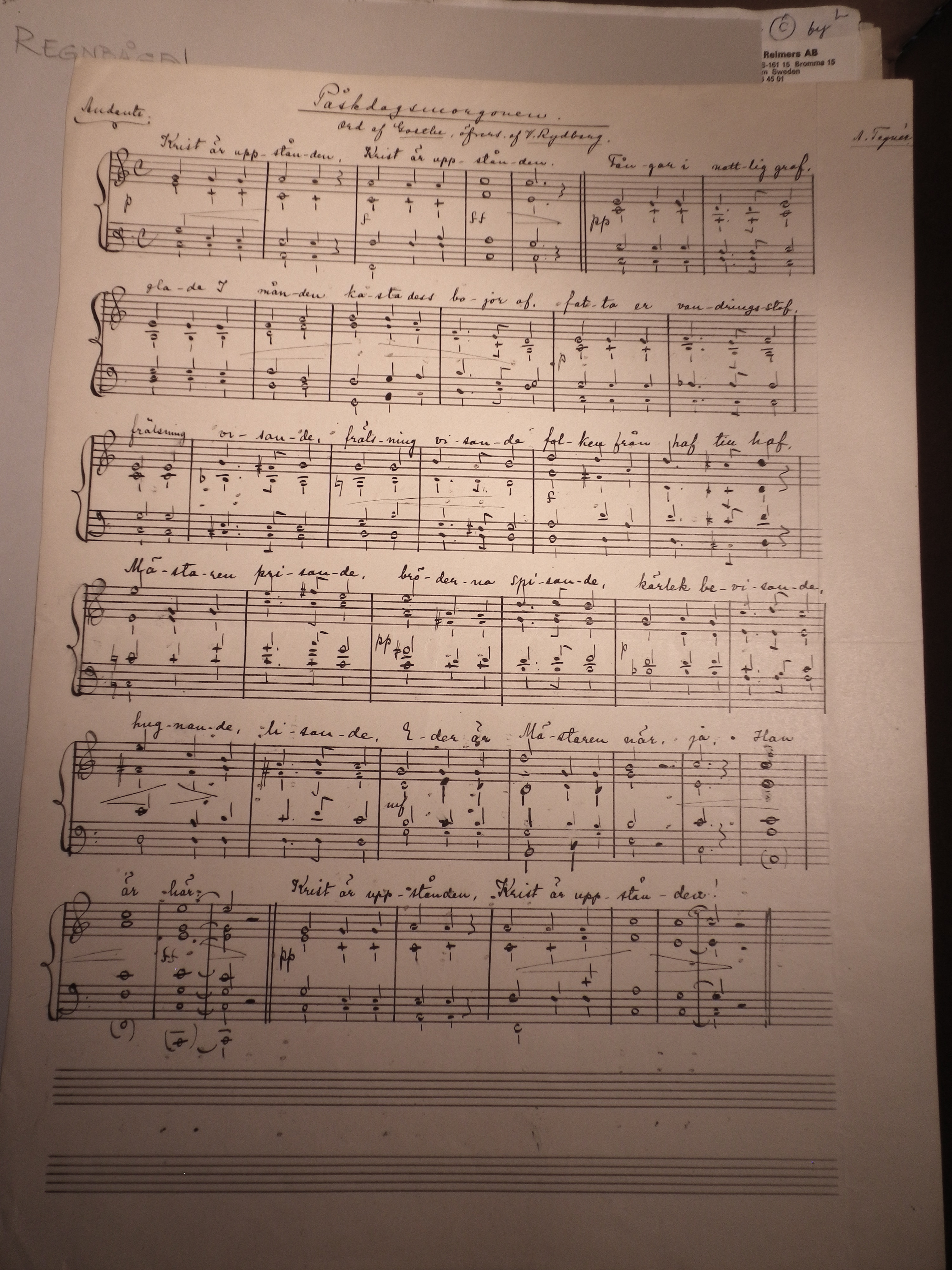 - Possible call no. and autograph comment: Alice Tegnér's collection, L. Reimers’s donation. Score. Scanned by the Musik- och teaterbibioteket